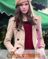 同样是一款亮眼的大红色外套,中长款的长度可以包住臀部,露出修长的大腿。这款外套是圆领设计,不要觉得圆领只能搭配高领。内搭一件圆领连衣裙更有韵味哦!勾勒出脖子的精致线条与挂饰完美融合,美翻了!
